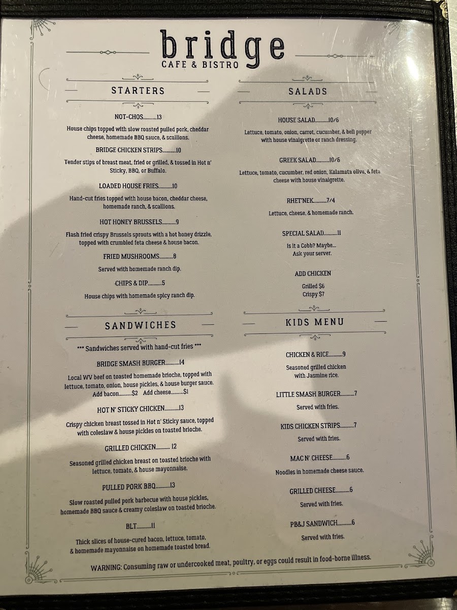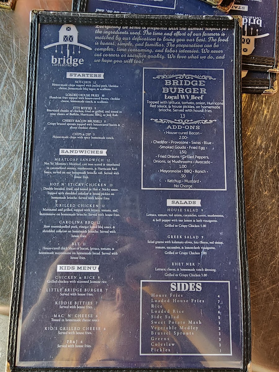 The menu at Bridge Cafe & Bistro offers a balanced blend of simple café staples and comforting casual bites, perfect for any time of day. Whether you're stopping by for a warm cup of coffee in the morning or settling in for a relaxed lunch or dinner, you'll find thoughtfully prepared dishes that complement the cozy, inviting atmosphere of the space.