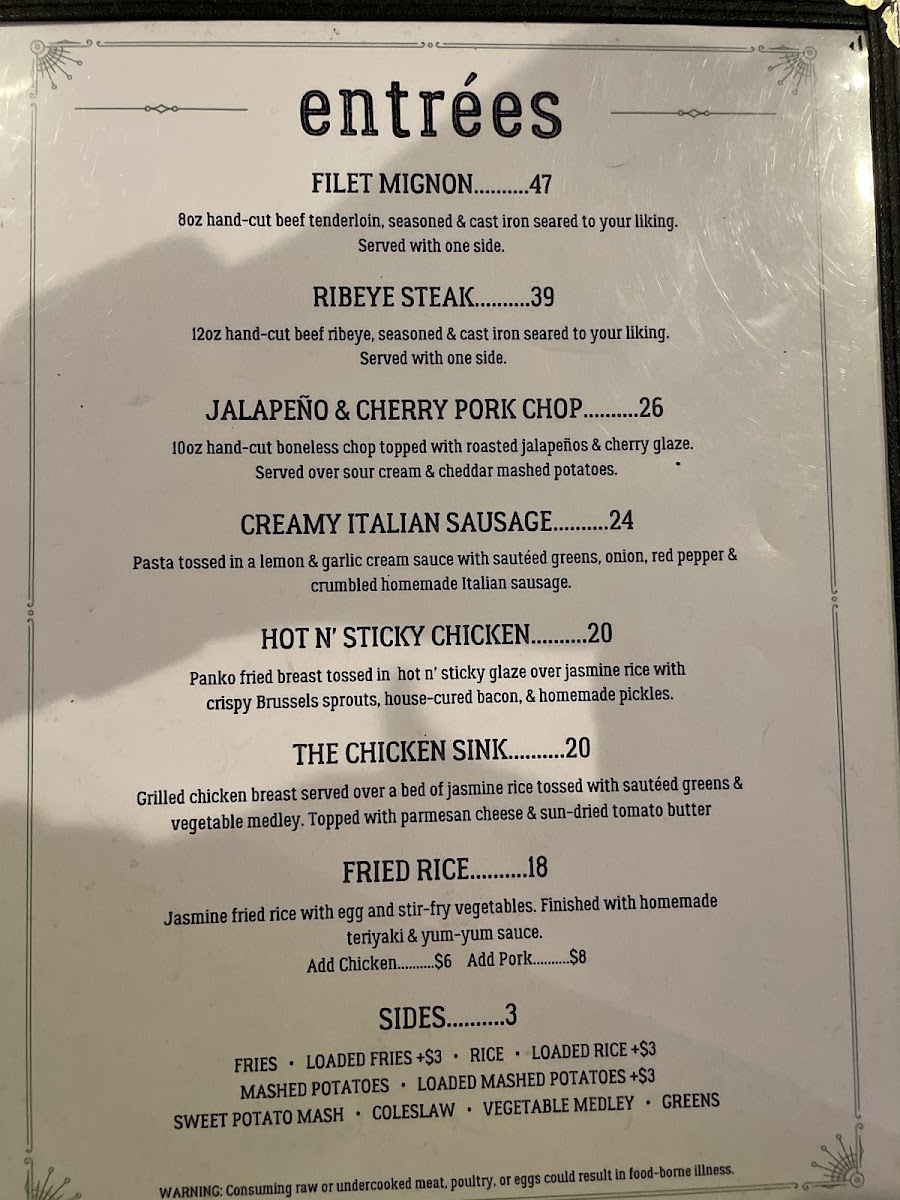 Breakfast selections, like the hearty Hurricane Hash or sweet and savory banana pancakes, create a satisfying start to the day. Lunchtime favorites such as the Carolina BBQ Sandwich and Cookout Style Burger offer familiar, flavorful comfort food that pairs well with house-made sides. For those seeking heartier dinner options, dishes like Roasted Free-Range Chicken and Braised Chicken and Rice bring a homestyle touch that feels both nourishing and approachable.